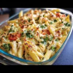 - Add the Topping and Bake: In a small bowl, combine the remaining 1/2 cup of cheddar cheese, the 1/4 cup of Parmesan cheese, and the optional Panko breadcrumbs. If using breadcrumbs, drizzle with 1 tablespoon of olive oil and toss to coat. Sprinkle this topping mixture evenly over the pasta in the baking dish.