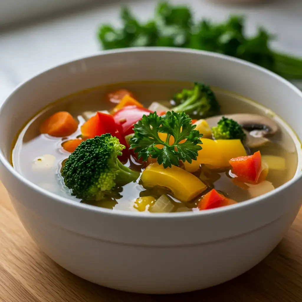 Moreover, the health benefits of this soup are substantial. Packed with vitamins, minerals, and antioxidants from the colorful array of vegetables, each bowl contributes to a well-rounded diet. The clear broth is light yet nourishing, making it an excellent choice for those seeking a low-calorie option that doesn’t sacrifice flavor. Additionally, the soup is naturally vegan and gluten-free, catering to a wide range of dietary needs and preferences. Its rich nutrient profile supports overall well-being, promoting healthy digestion, boosting the immune system, and providing sustained energy.